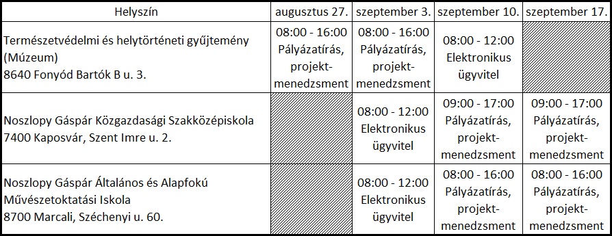 Civil szervezetek fejlesztéseA Zselic Vidékfejlesztő Közhasznú Egyesület díjmentes képzést indít civil szervezetek számára Kaposvár, Fonyód, Marcali településeken. Az Egyesület képzési projektje a civil szervezetek szakmai fejlődését, társadalmi szerepvállalásának elősegítését szolgálja. A pályázati program segítségével a régióban működő civil szervezetek a hazai és Európai Uniós pályázatok jobb kihasználásával, a hatékony és eredményes projektmunka megvalósításával, a működésükhöz kapcsolódó elektronikus ügyviteli ismereteiknek bővítésével fejlődhetnek tovább. Az oktatási program keretében átadott tudásanyag, nem csak elméleti, hanem naprakész, a működésben azonnal alkalmazható, megalapozott tapasztalatokon alapuló információkat tartalmaz. A képzés ideje: 20 óra – 3 alkalom (szombatonként). Kezdés: Fonyód - augusztus 27., Kaposvár - szeptember 3., Marcali - szeptember 3. A képzés ingyenes!